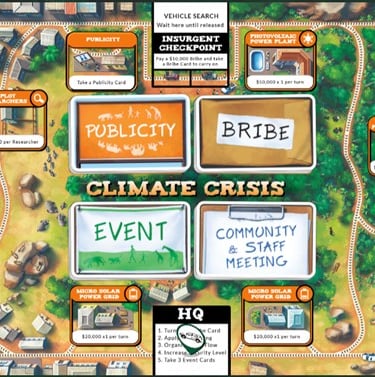 GAMEngage is testing different climate-related roleplaying games, to see how they impact people's knowledge and beliefs about climate security and sustainability. The project has already supported testing for 400+ senior officials from the military, civil service, NGOs, charities and academia from over 50 countries. We're working to expand the number of games and the ability for non-experts to access and deliver games themselves.